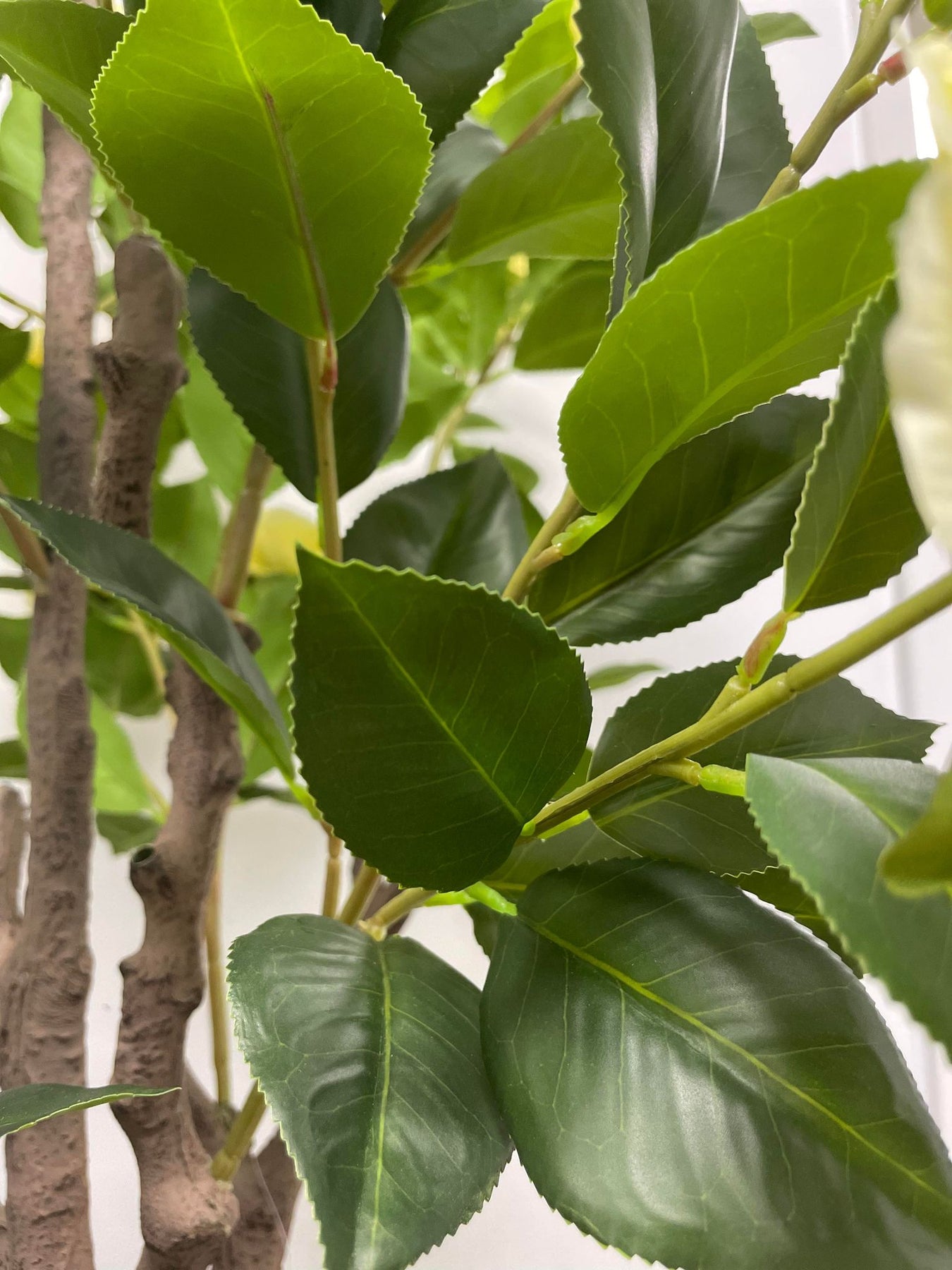 Embrace tranquility with the soothing yellow textured flowers of our Camellia Artificial Tree, designed to impart a calming, natural appearance to any space. This nature-inspired piece welcomes the season with a faux-bulbous trunk nestled amidst lush dark green leaves and delicate yellow flowers, making it an ideal choice for enhancing wedding décor. Despite its modest footprint, this flower tree effortlessly commands attention in any room.