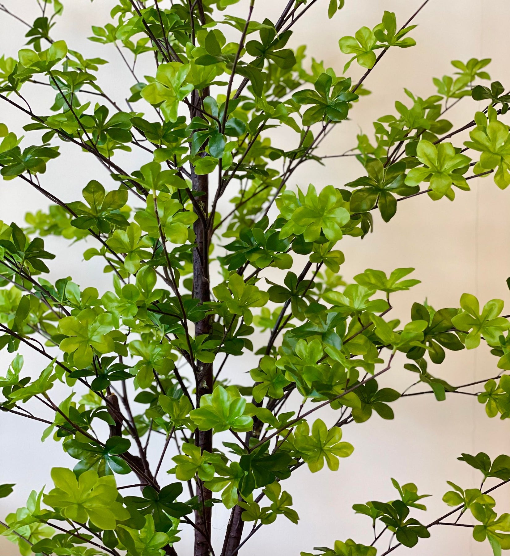 Vibrant artificial plant with dense, bright green foliage and dark branches, adding a fresh, natural look to indoor spaces