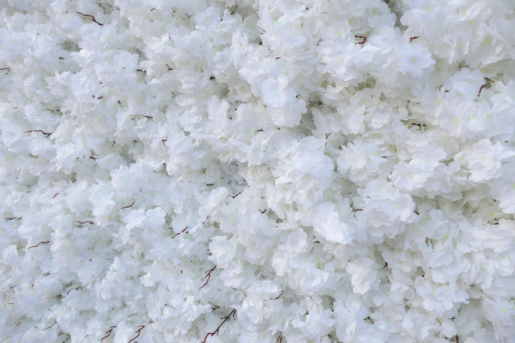Created by combining two 4ft x 8ft panels, this backdrop features densely packed, high-quality artificial cherry blossoms with a pure, soft white hue.