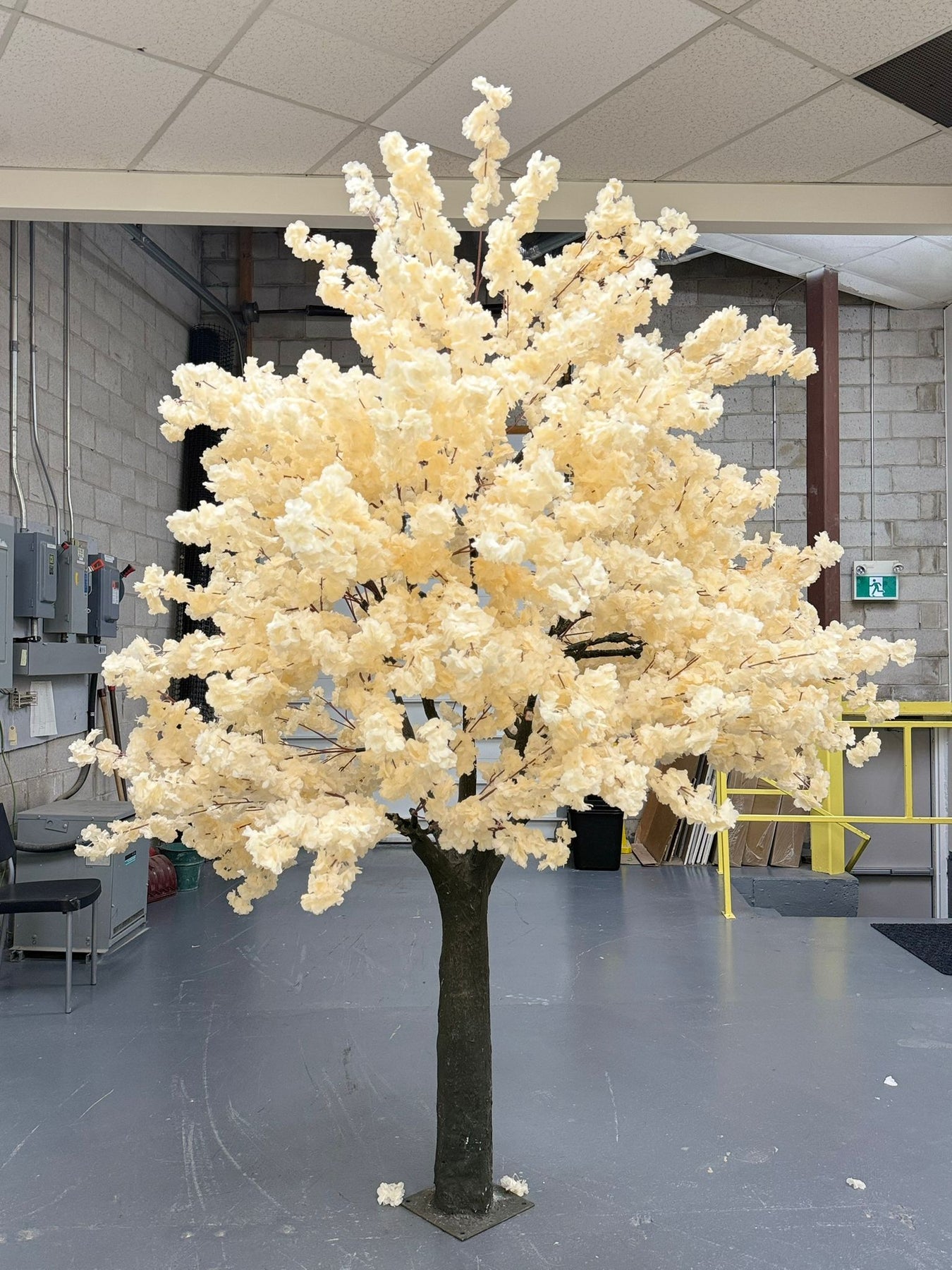 Create an elegant and calming atmosphere with our 8ft Off-White Cherry Blossom Artificial Tree, a sophisticated rental piece designed to elevate any event or interior space. Featuring soft off-white blossoms and beautifully detailed foliage, this tree delivers a warm, natural aesthetic while maintaining a luxurious visual impact.