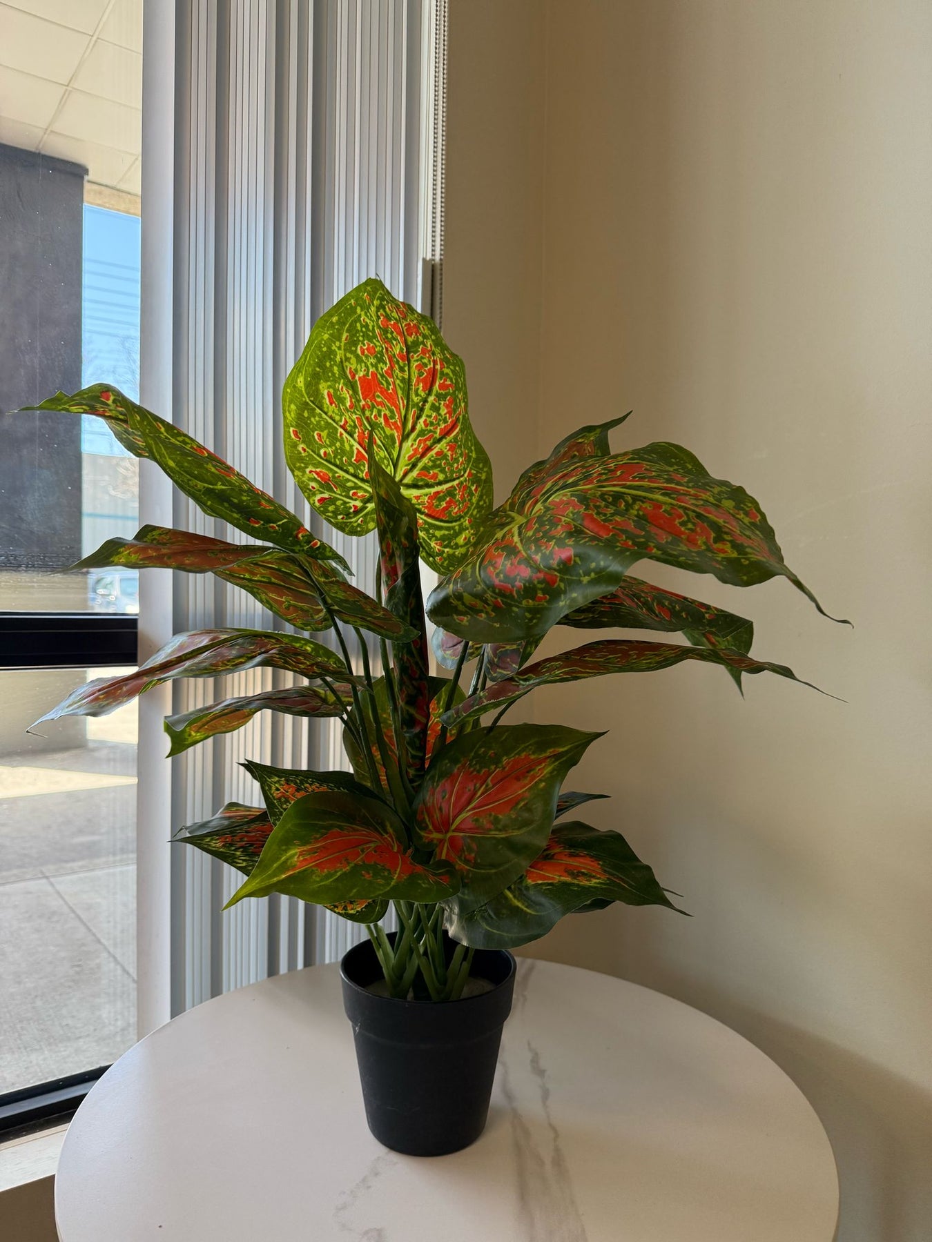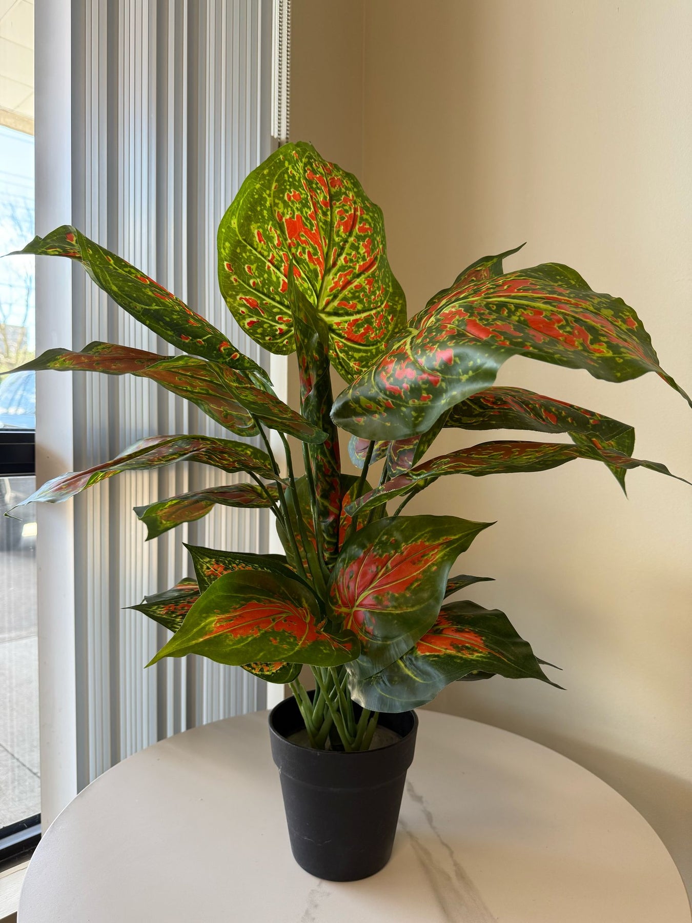 Add a touch of vibrant color and tropical elegance to your space with our Artificial Red Aglaonema Desk Plant. Featuring lush green edges and vivid red centers, this lifelike faux plant brings a bold, natural accent to any room — without the need for watering, sunlight, or maintenance.