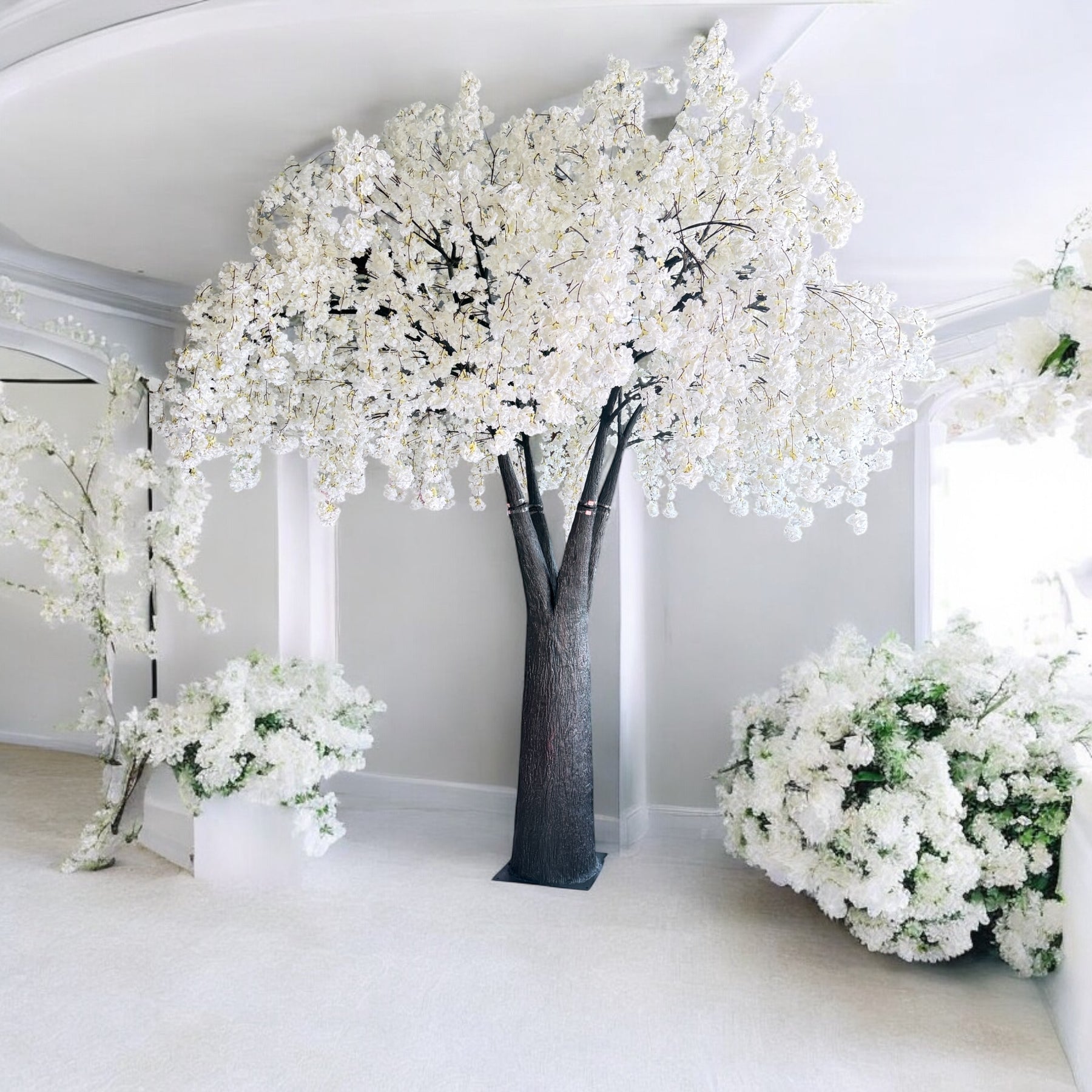Create a magical and sophisticated ambiance with our 12ft Tall Artificial White Cherry Blossom Tree. Perfect for weddings, corporate events, upscale venues, or luxury home décor, this breathtaking faux tree features delicate white blossoms and a realistic trunk, making it a show-stopping centerpiece.