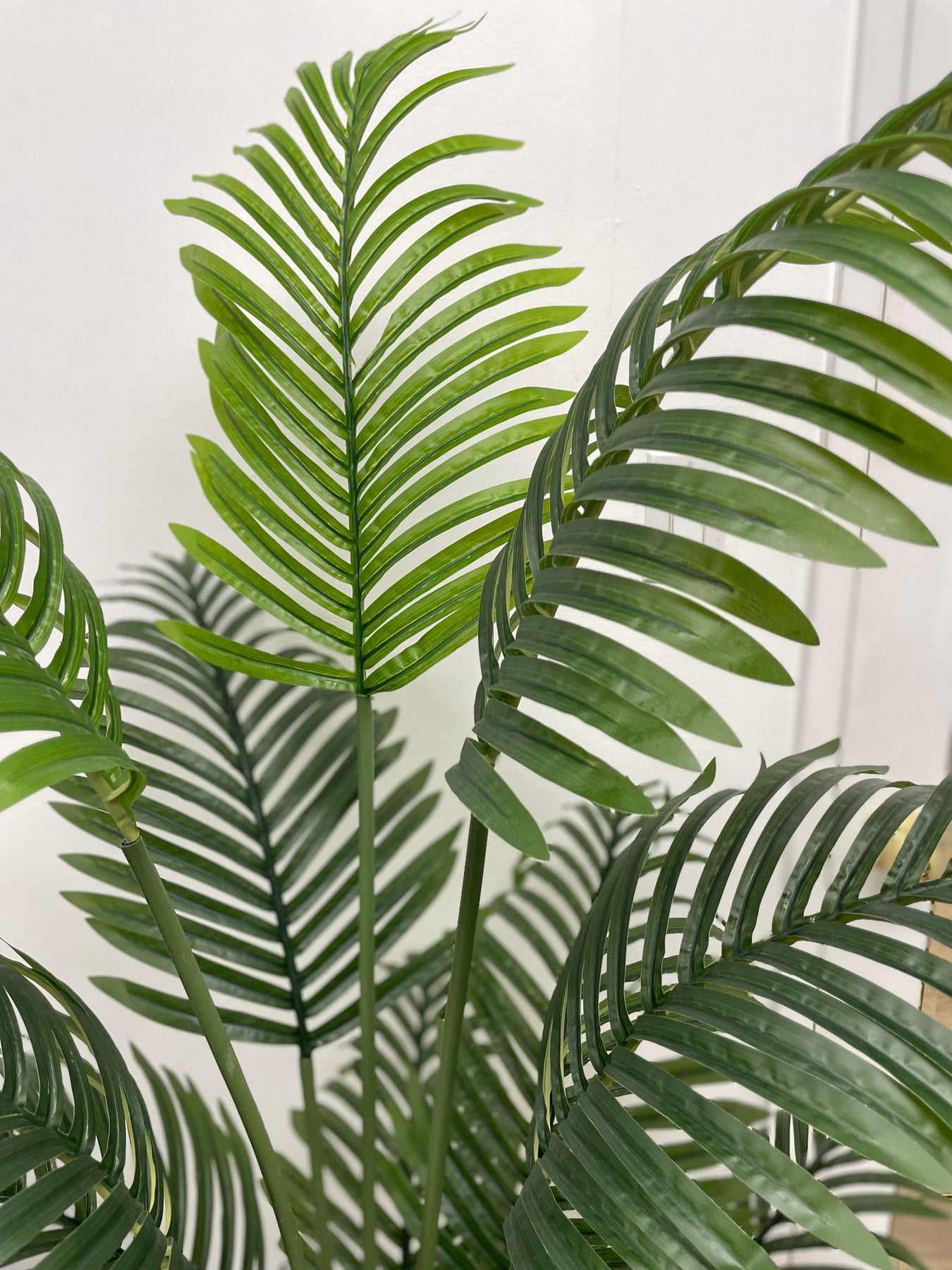 Accentuez n'importe quel ensemble avec une élégance aérée avec ce palmier artificiel en pot luxuriant de 6 pi. Laissez-le compléter une couette blanche immaculée dans la chambre principale pour faire passer votre retraite de repos d'ordinaire à digne d'un centre de villégiature, ou placez-le à côté de la porte d'entrée avec un tapis en jute tissé naturel pour créer un ensemble accueillant de plage.