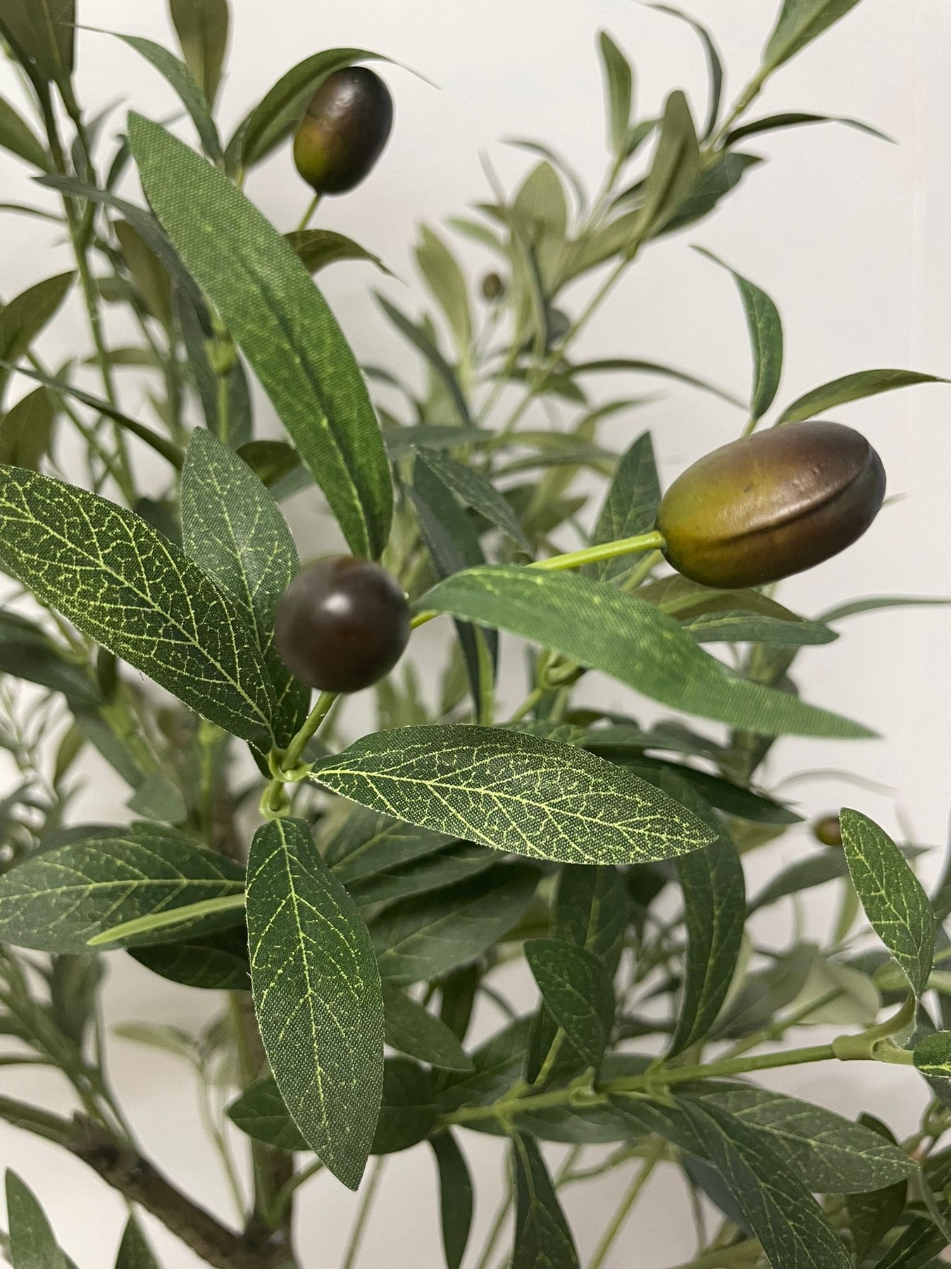 Notre olivier artificiel de 5' (150 cm) est soigneusement conçu pour imiter l'apparence d'un olivier artificiel vivant, aussi proche que possible de la réalité. Tronc unique divisé en plusieurs tiges, orné de 1176 feuilles d'olivier et de dizaines de fruits d'olivier, ce faux olivier crée une impression dramatique de beauté, de longévité et d'élégance. Des feuilles d'olivier clairement texturées et des couleurs vives font de ce faux arbre un décor saisonnier intemporel.