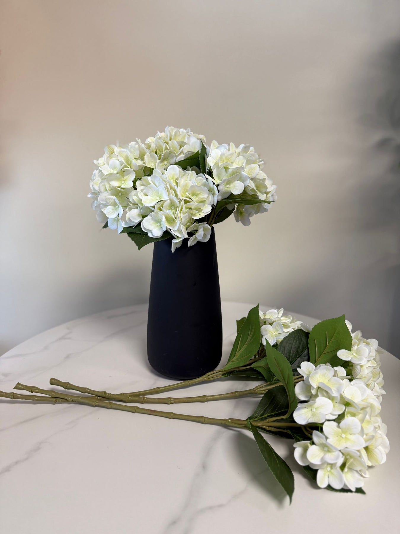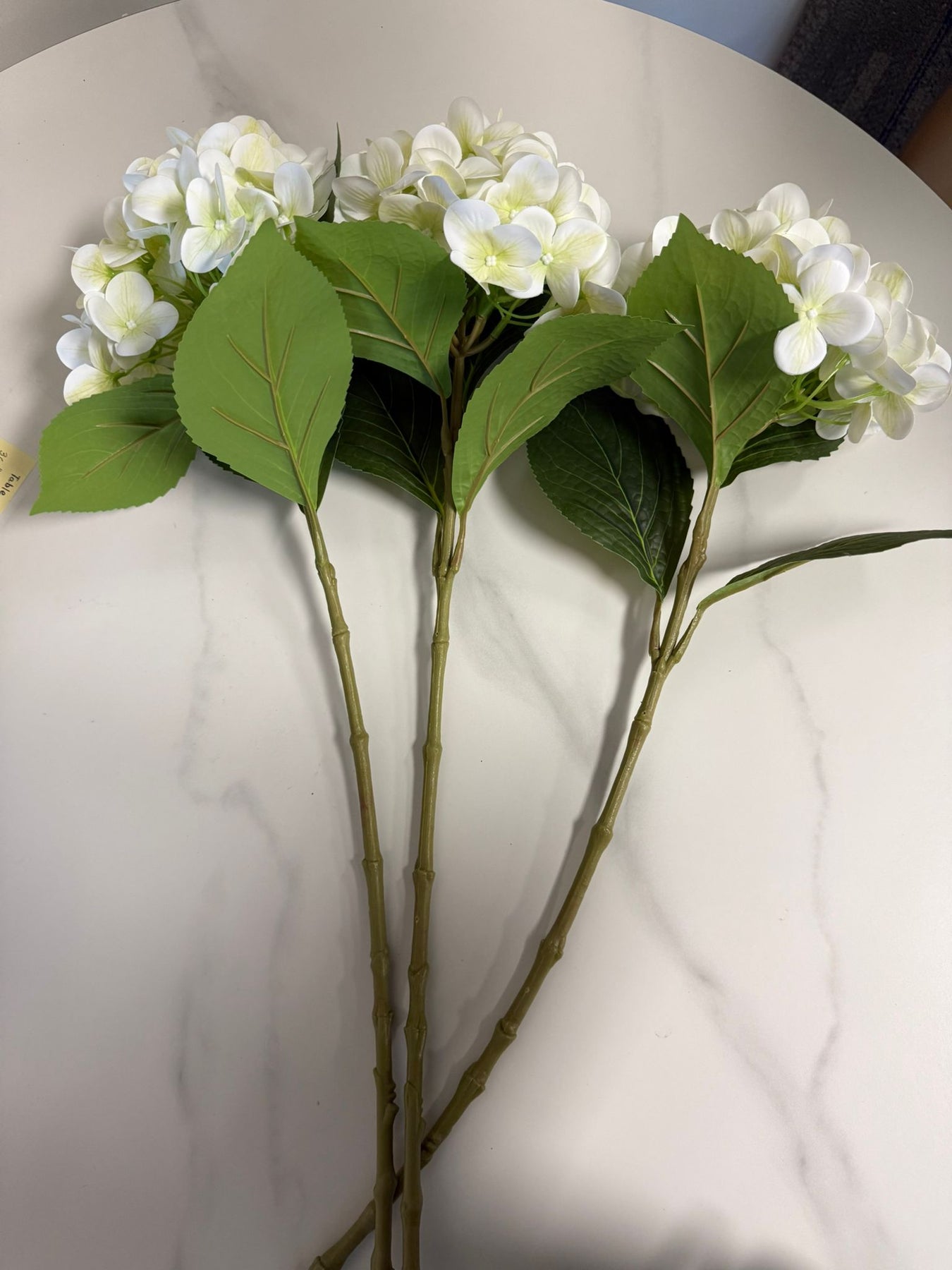 Brighten up your space with this stunning set of 3 Artificial White Hydrangea Stems, perfect for creating elegant arrangements without the maintenance of fresh flowers. Each stem features a lush bloom with white petals and realistic green leaves, ideal for vases, bouquets, or DIY floral projects.